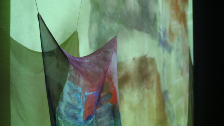 Digital Print on Chiffon, Wood, Embroidery Thread, Varying Dimensions