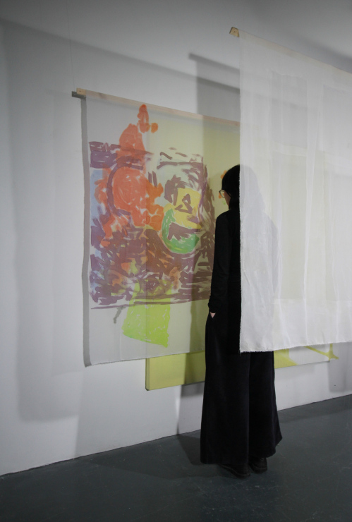Acrylic on Chiffon, Wood, Varying Dimensions
